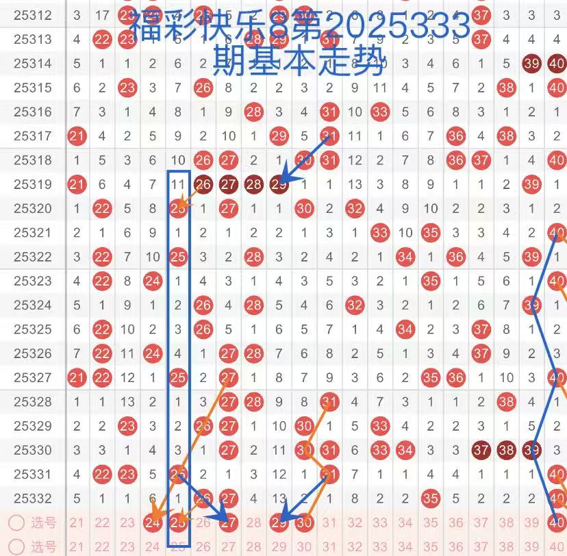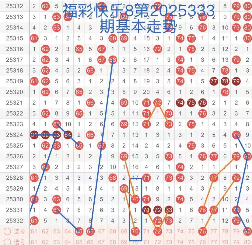 下面是我对2025333期福彩快乐8的分析和预判,希望通过我的分析能让大家今晚大满贯!福彩快乐8上期开奖号码如下图