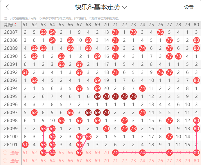 接下来为大家带来快乐8本期号码走势分析,供各位参考。
