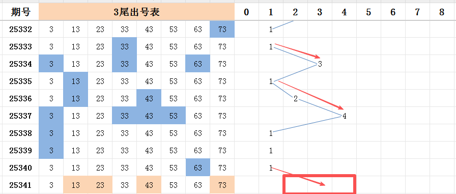 本期看好号码开出的范围是两码走势至四码走势之间。上期开出的尾号中,围中一尾和五尾,分别开出了四码走势和三码走势。本期看好的五个尾号依旧是今年的热尾,看好近期能够再次开出几期的多码尾号,热别是三尾,是今年最热的尾号,看好年尾的这十期能再次开出一次。