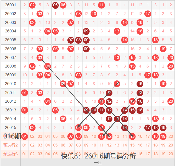 快乐8:26016期号码走势分析(26年,祝大家好运连连)