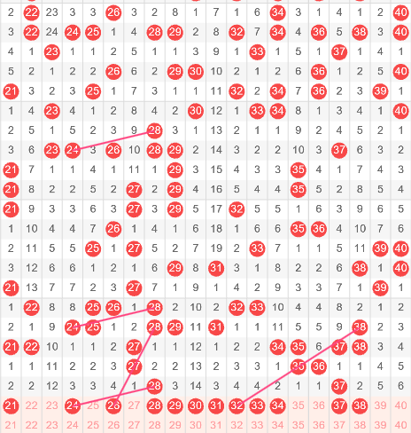 第二区间首先看好龙头位置的21号码球有机会下落 ,再看24 26这里 可以二选一出号有机会 ,然后后面的28 - 34阶段的号码球今天有可能走出大连趋势,大家可以自己挑一下号码,尾部看h37 38这个 对子 有机会回补下落,该区间可推荐的选二搭配组合有 21 31或者 26 32 第二区间胆码主看21 29 31 32 37