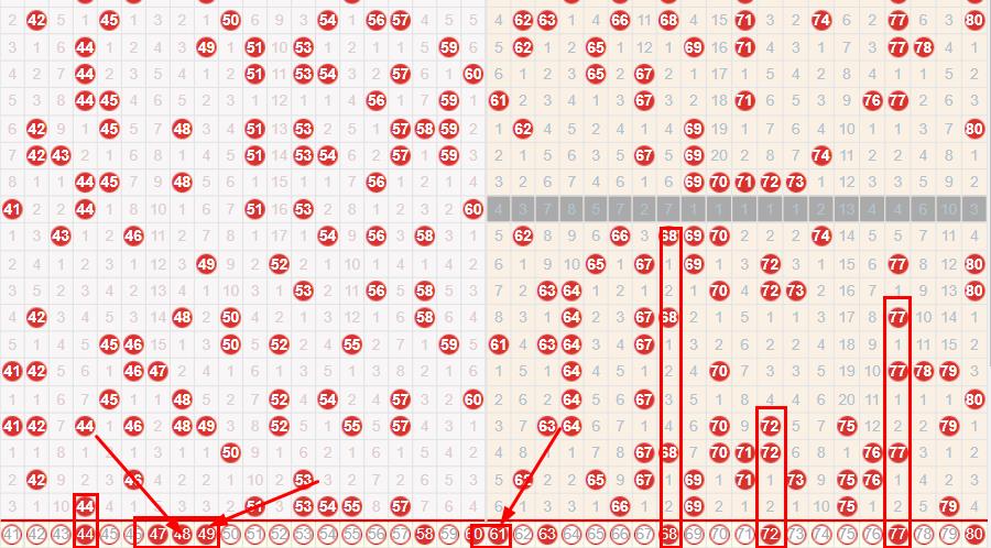 第三小区间41-60上期该区间开出来6个号码,本期的走热的几率也是比较大的,本期的49 50的姐妹组合参考下开出的几率也是比较大的本期的44 45的姐妹组合落号也是比较大的,这里的42 45的组合落号也是比较大的,这里的54 59的组合和56 59的组合落号也是比较大的这里的50 51的组合关注下,这里的50 55的组合落号也是比较大的,这里的48 50的组合防守下本期的57 60的组合落号也是比较大的本期的48 58的同尾落号也是比较大的这里的44 48的组合落号也是比较大的