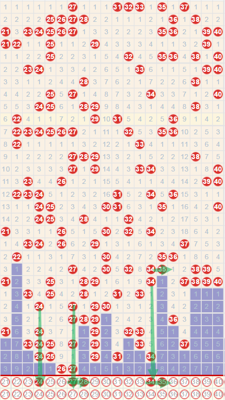 福彩快乐8:二区间在上期的开奖中落号数量急转直下,只有两枚中奖号码,且为二连落号形态,那么在本期的分析中可参考的数值就比较少了,目前二区间末端以及三区间的前段走势依然还是比较冷的,大家咋选号的时候还是需要尽量避开这一区段的,在本期的二区间需要注意24 27的高频组合码,或者是单码选择,个人建议还是可以作为二选一的。
