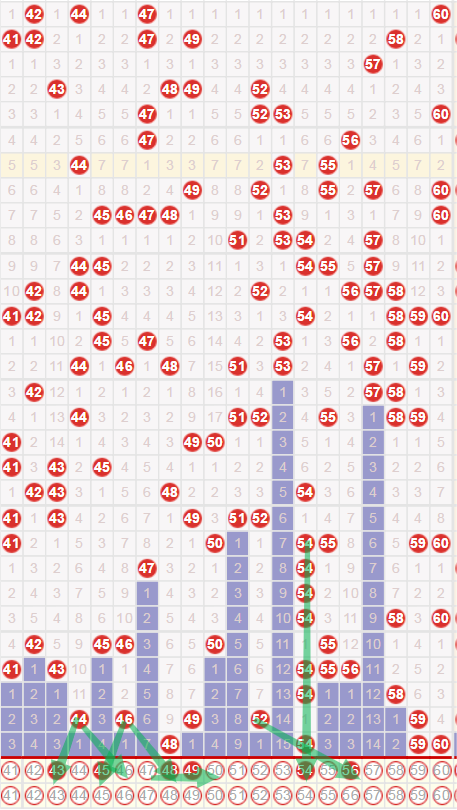福彩快乐8:三区间在上期的开奖中落号数量为四枚,还算是较为坚挺,有着不错的回暖迹象,但还是建议大家在选号的区段尽量避开一些,目前的三区间稳定性还是比较差的,在往期奖码44 46的下方需要注意纯直直落44 46,再者就是向左向右的错位如:43 45,或者是46 48,整体可选号码较多,谨慎选择,在三区间比较明显的号码就是56号,我们经常讲,在冷号回归之后的观察期为5期,大概率出现第一次回补,目前的56号遗漏期数为三期,还是可以作为单码考虑的。