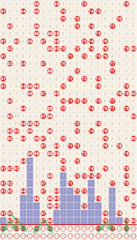 四区间(61-80)上期奖码:62 63 67 68 76 79 80