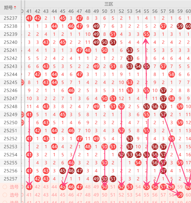 而三区的打底号是41.46.49.50.53.56.中参考2码开出机会,