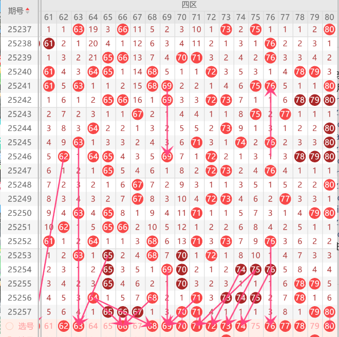 四区间打底号是63.66.68.72.73.参考2-3码开出机会
