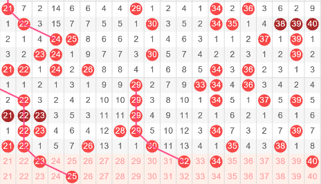 第二区间首先看上期 四重码的边码23,今天有机会下落。在看冷码32的下落,他的复制形态今天有机会走出。然后防守34以及40号码球的回补下落,该区间可推荐的选二搭配组合有23  32或者08 32.第二区间胆码主看23  32