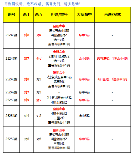 上期杀10码对9,免费文章杀5码全对,大底推荐命中7码,本期再接再厉。