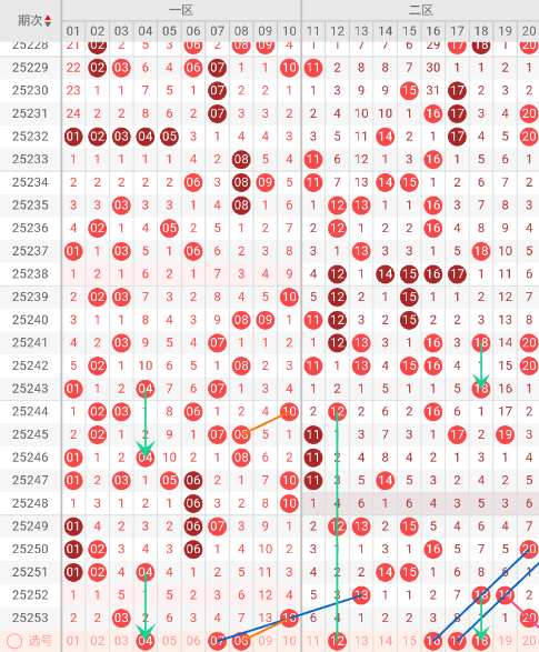 结合上期的数据分析,对快乐8第25254期的推荐如下: