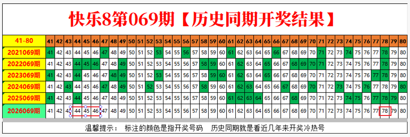 历史同期开奖结果仅做个参考数据即可。以后不会做过多的分析,因为涉及的号码比较多,也无法更细致的体现出来。它不像开奖走势图那样,可以直观的看到,由于开奖期数的限制,所以还是把重心放到常规走势图上。