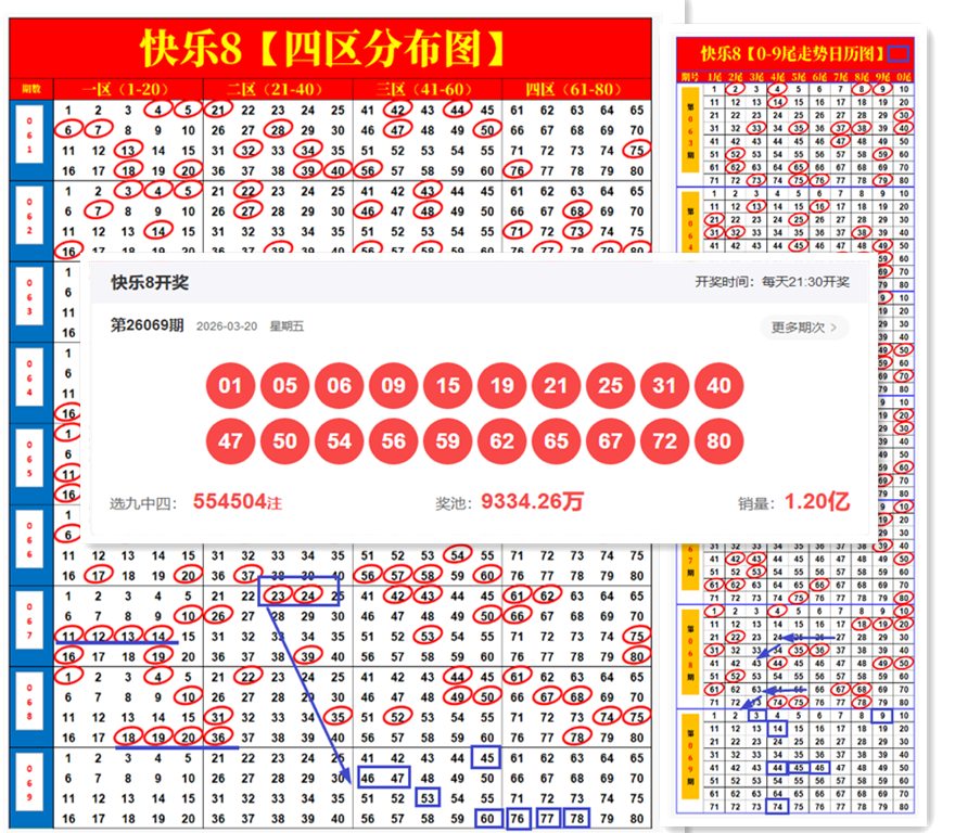 快乐8第2026070期尾号、四分区走势分析,念念不忘,必有回响!