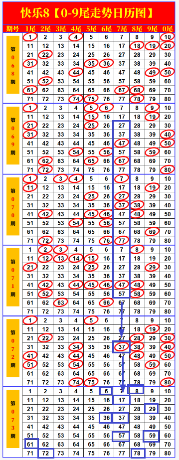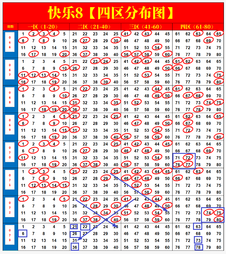 票鸽·快乐8第2026073期:尾号+四分区分析画线,因为热爱,所以努力!