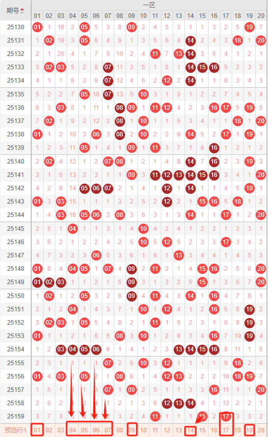 一区:最近一区10期出号情况为:6 5 5 5 8 4 8 4 3 3,总出号情况为50个,平均出号5个,本期推荐一区号码回补推荐出号为:01 04 05 06 07 09 14 17 19。重点关注:04 17 19。