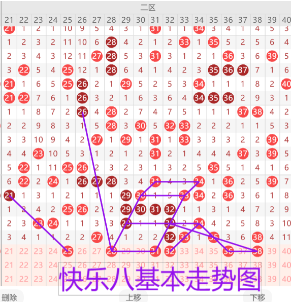 我们来看下二区的基本走势情况,上期开出了五枚开奖号码,本期预计开出3-4枚开奖号码,首先我们来看25的三斜连。28 31的平行双码。32的四重倒三角走势形态。36 38的交叉斜连双码。优先考虑32 36二选一,选择36,可以考虑36 38同出。
