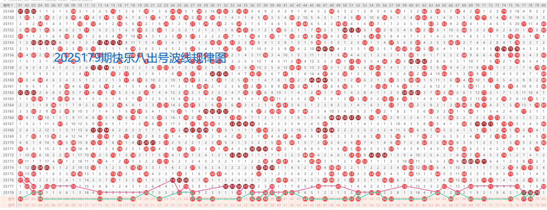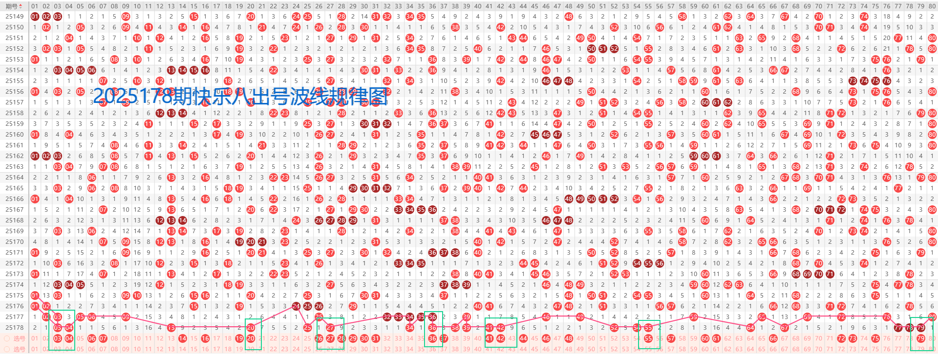 这快乐8有点小长,一般看不全,作者把关联号和上期拉对的号都划了出来,方便大家查看。