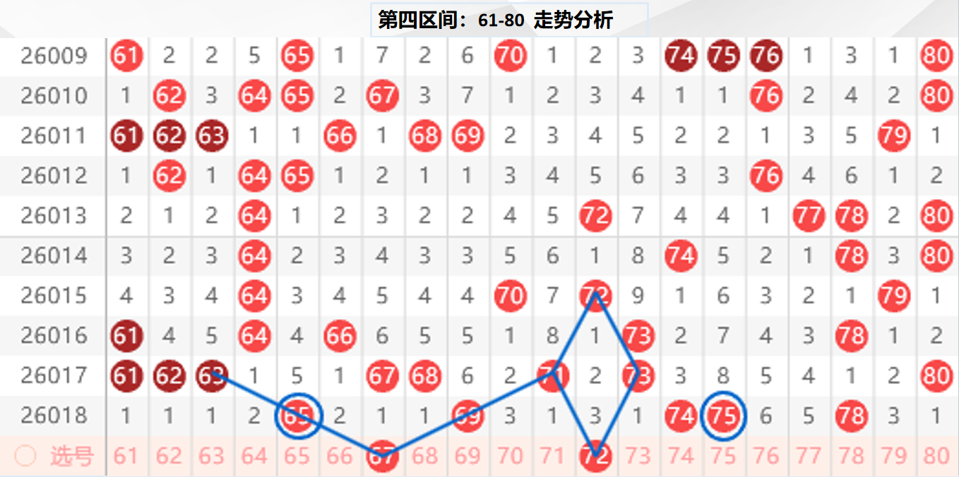 四区分析:【61-80】(走势图标注号码非小黄车大底,请谨慎参考,具体思路将在直播间分享讨论)