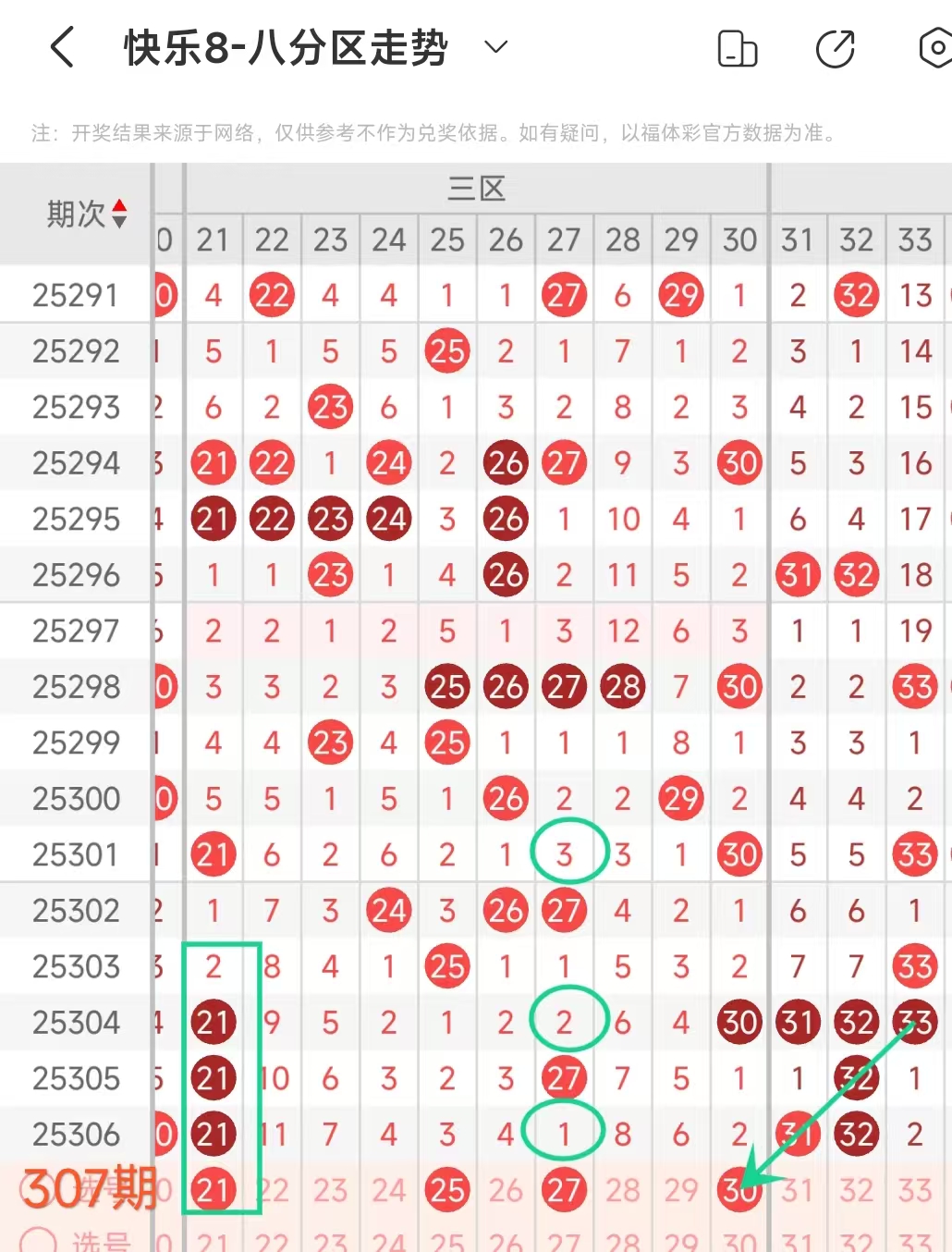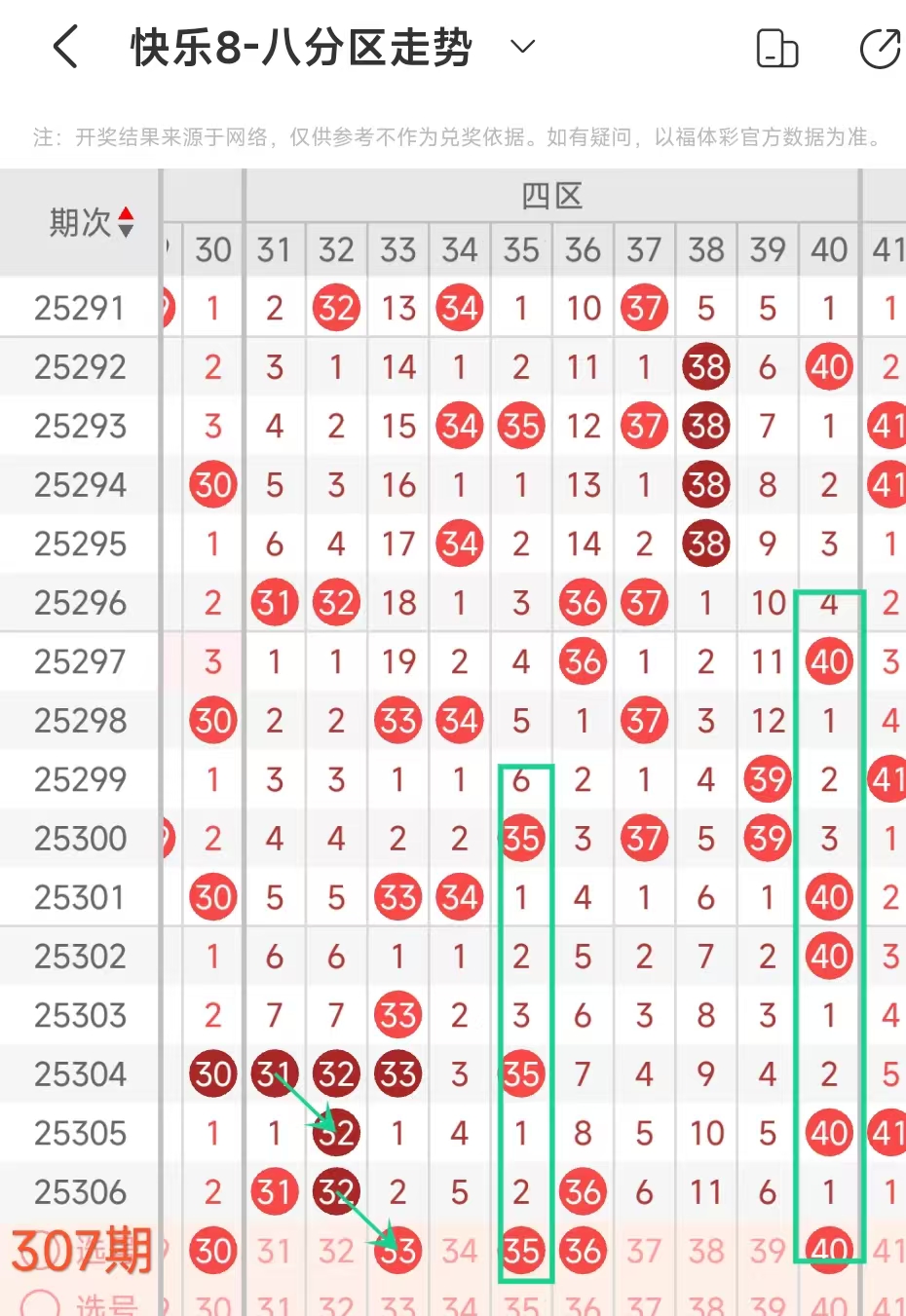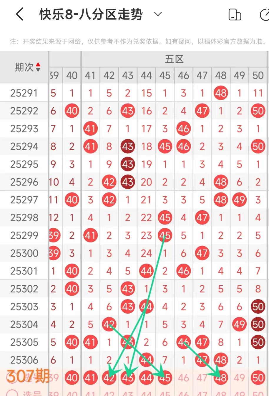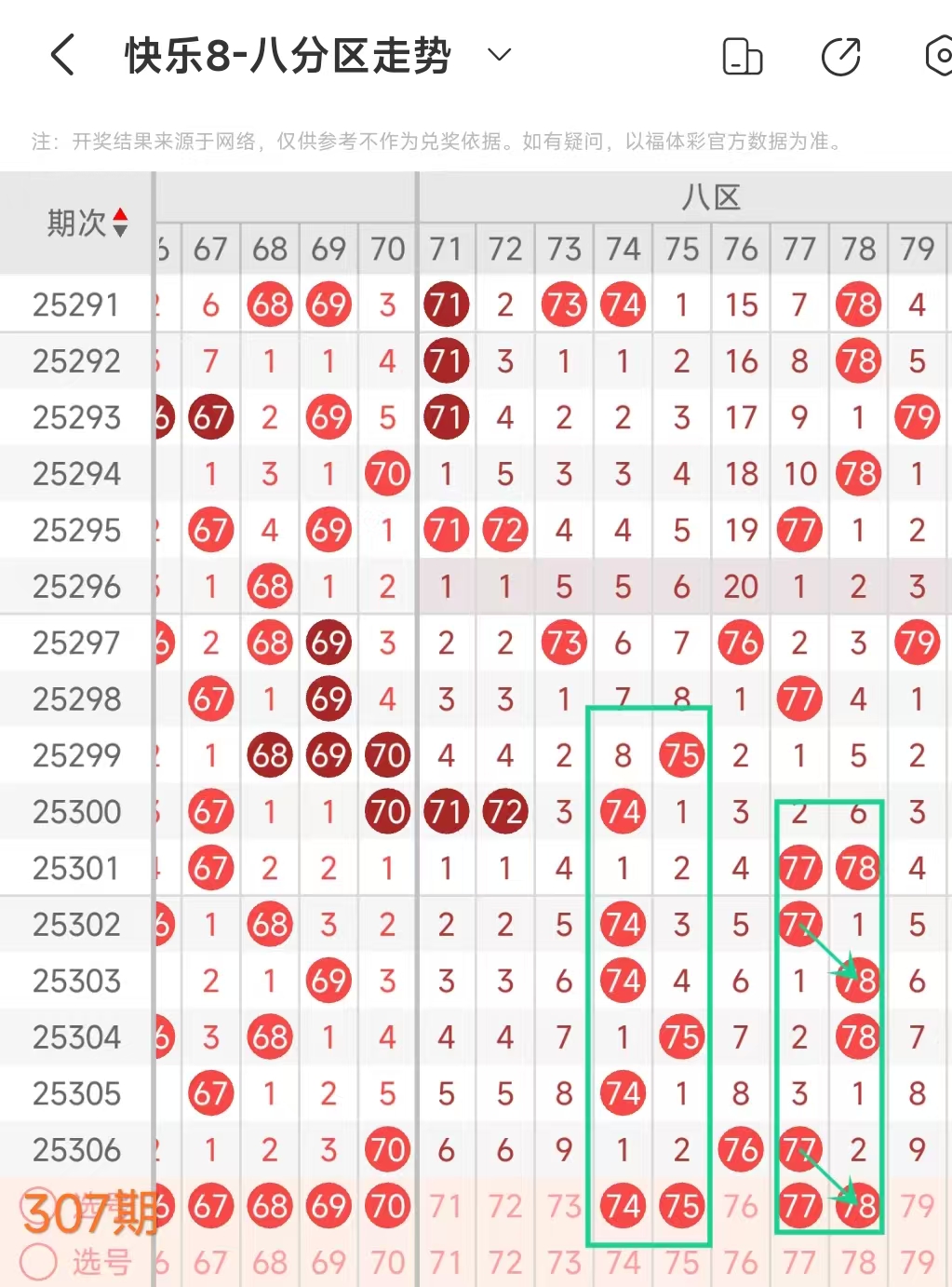 在快乐8的探索之旅中,通过对开奖走势图细致入微的观察,我们总结出一些具有参考价值的规律。几乎每一期开奖号码都呈现出以下显著特征:其一,大概率出现连号;其二,常常伴有边码;其三,遗漏值为1 2 3的号码频繁现身;其四,重号现象也较为常见。掌握这些要点,能为我们的投注提供方向指引。我们约定采用八分区走势图来展开分析。