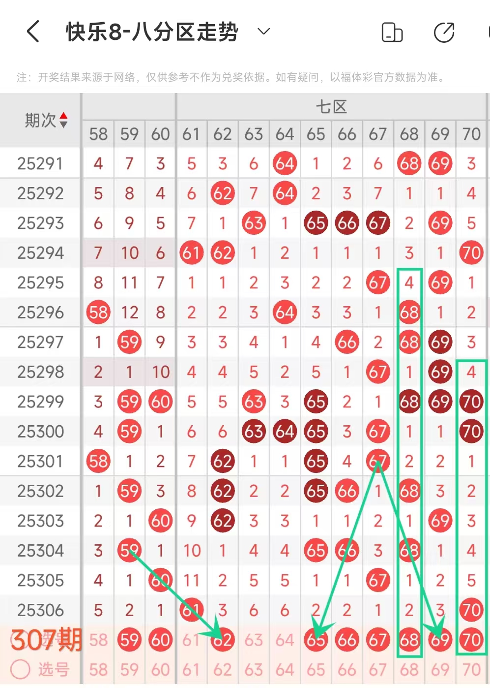 上期七区开出 61 70这2个号码,本期考虑出3个左右。