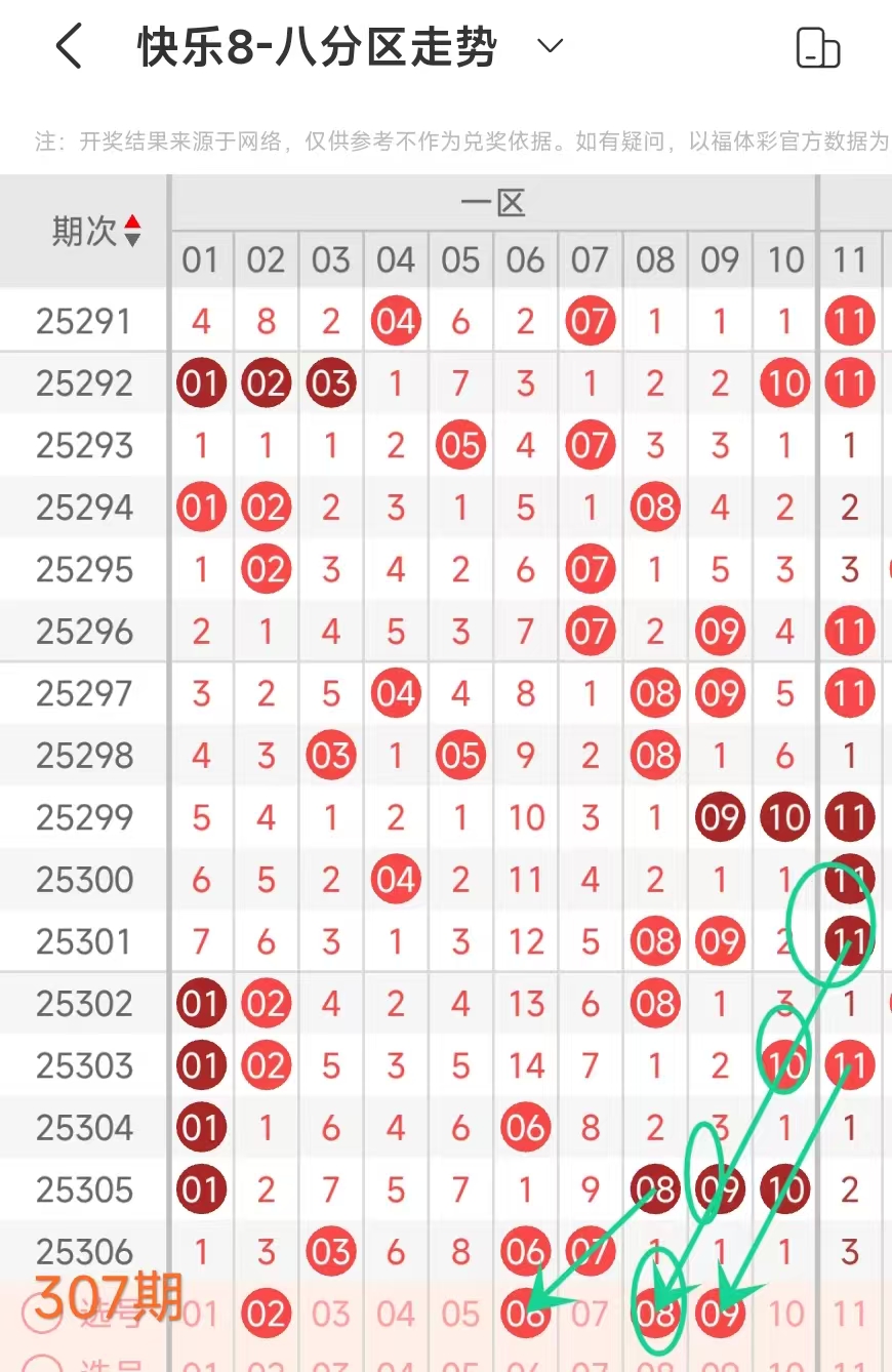 上期一区开出这03 06 07这3个号 码,本期应该出3个左右。