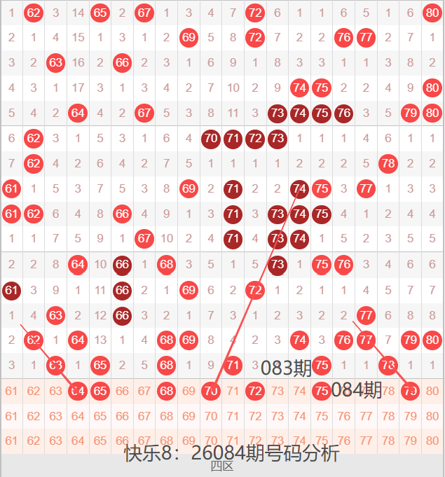 快乐8:26084期号码走势分析