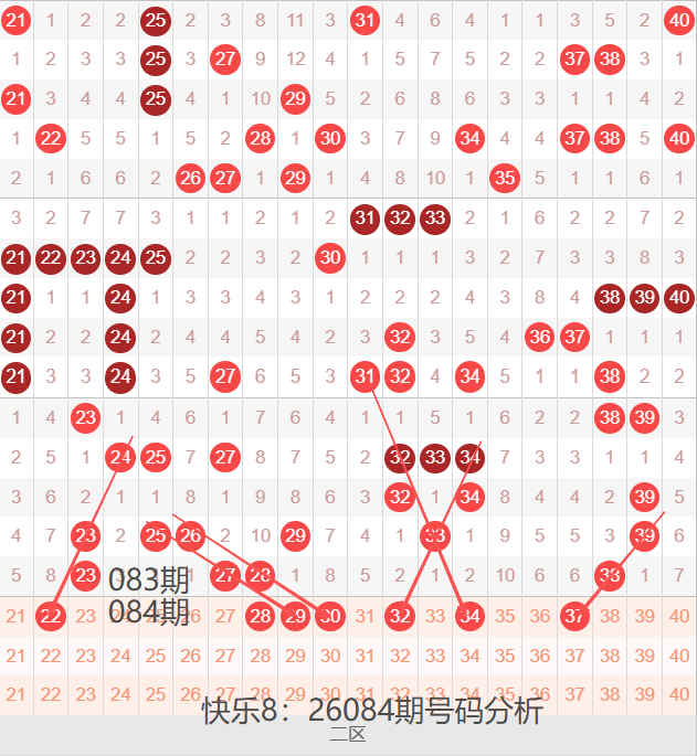 二区间21-40号码球走势,如下图: