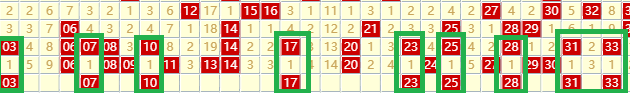 如上图遗漏1期选号 : 03 07 10 17 23 25 28 31 33 68 72 73 74 75共14个号码