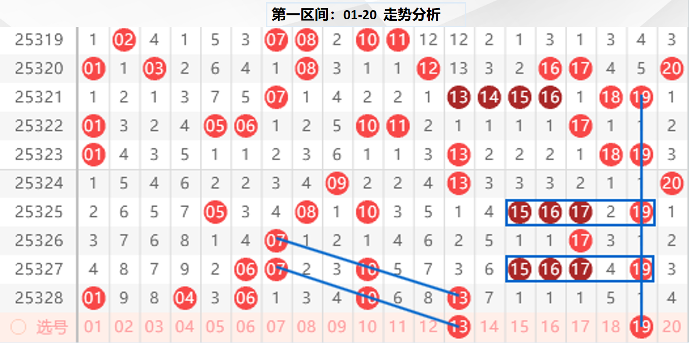 一区分析:【01-20】(走势图标注号码非小黄车大底,请谨慎参考,具体思路将在直播间分享讨论)