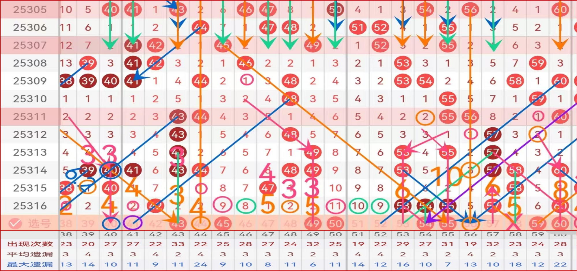 三区间推荐主做号码:43 45 49 50 54 55 59 60 防守号码: 44 47 57;