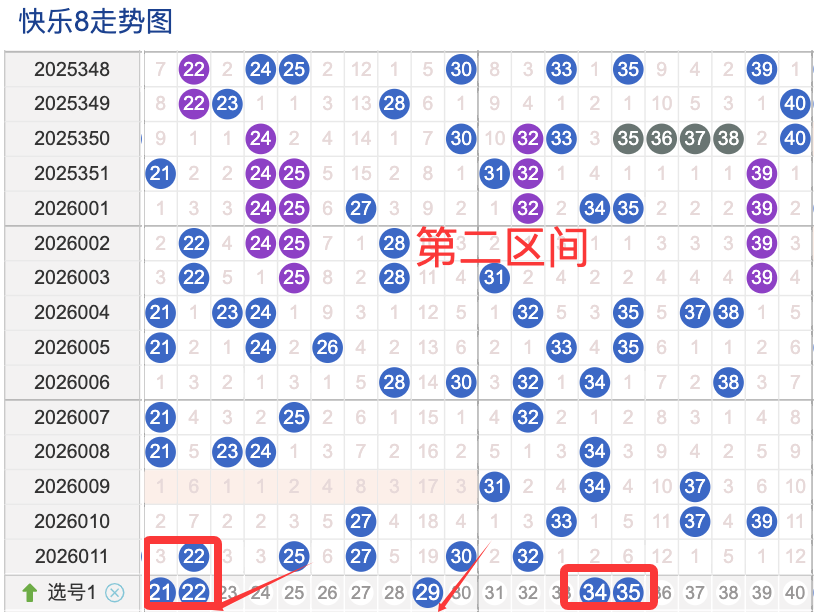 ·上期二区开出5个奖号(22.25.27.30.32)上期回顾二区开出5个奖号二区间在上期落位同比前期的话呈现了一个递增的落位趋势,先来看本期号码22整体活跃度较热,在近 30 期里有一定的间歇性出现,不是每期都开,近期整体走势还是很稳定。号码21近期热度较热,间隔性还是很好,说明其在当前阶段活跃度较热注意防守。号码29近期活跃度较冷,有一定的间歇性近期整体走势相对还不是平稳有特别明显的冷热趋势变化,号码35近30期内活跃度较热,没有明显的连续出现形态走势,整体表现比较动荡还是很稳定。