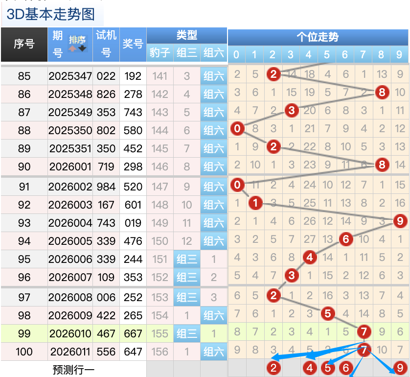 上期的3D个位开7号球,上期开出的是组六按照形态的话本期打组六形态,上期的7号球的落位是个位上的一个重码的落位趋势,本期先来看2号球在个位还是有机会继续走出小号落位点这里要注意是一个折返的落位点,5号球和6号球是这里的落位点是两个小周期号码的落位点这里注意防守一码就好了也是这里的两码走势都是非常好看的注意选择一码,再看9号球这里注意继续走等差的落位形态。