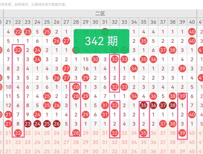 二区上期开出7码,出号极多,本期大概率降温回调,但仍会维持合理出号量。22与上期密集出号的21、23形成连号延伸,历史数据中相邻号码后续出现概率较高,且其属于中温号,活跃度适中。28填补了上期27-36段的断档空白,从区域分布均衡性来看,该区间需补位出号。32和35均为近30期出现频率平稳的温号,二者奇偶属性互补,能优化区域内奇偶比例。39作为长期热号的延伸,近百期出现次数稳定,可平衡二区整体出号强度,避免过度降温导致的区域断档。