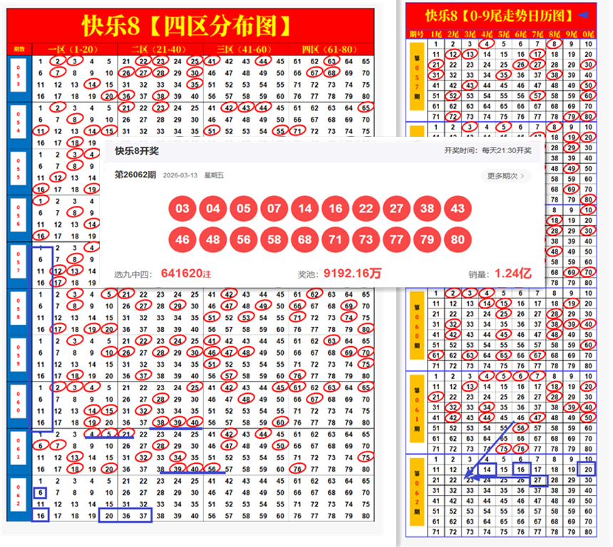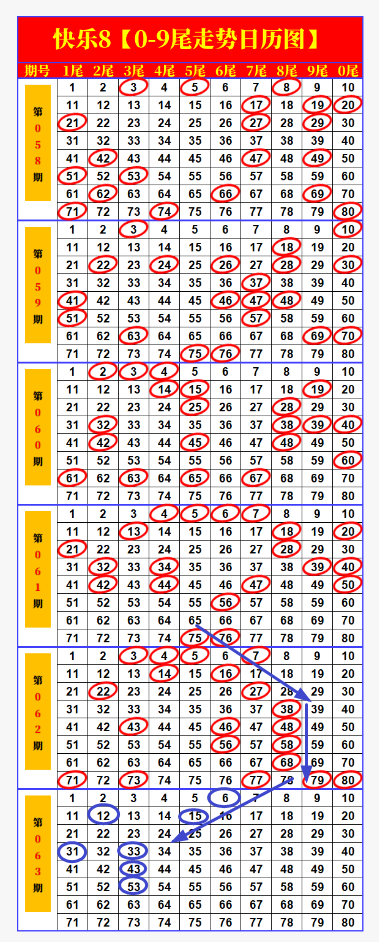 快乐8第2026063期尾号分析,且看本期分解【上期尾号画线4码中3】