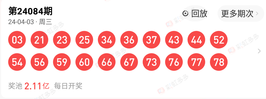 首先看上期回顾,“快乐8”24084期开奖号码: