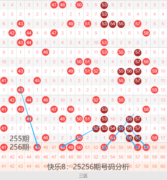 三区间41-60号码球走势,如下图: