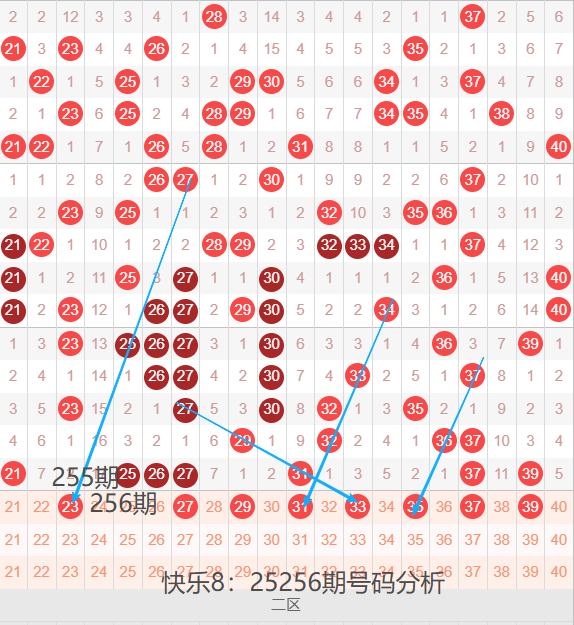 二区间21-40号码球走势,如下图: