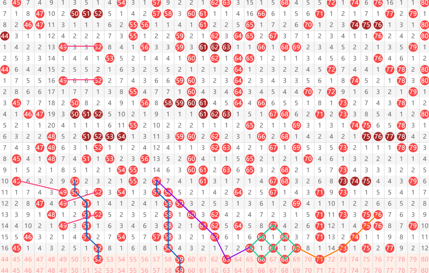 40-42:40-41-42这里已经4期没有出号码,本期看好回补,主看40-42回补一码