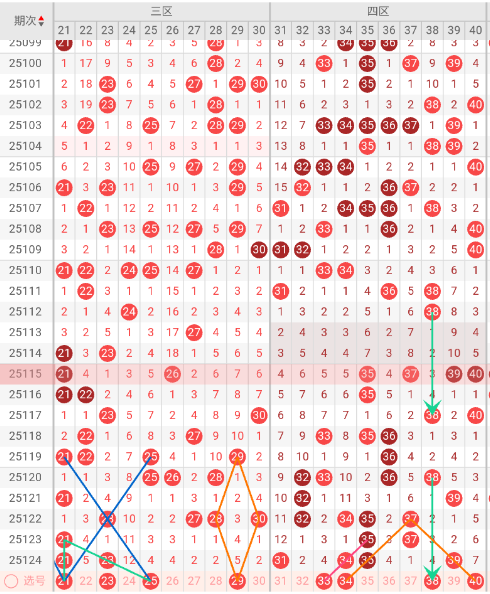 四区开出:31,34,35,39 奇偶比: 3:1 和值:139 跨度:8,上期开出4个号码,奇数号码占优势,重号:35,重号数:1。本期三斜连走势:33,无隔码斜连走势。近5期出号量:4-2-4-2-4,近10期平均出号3枚,上期奇偶比: 2:0。本期推荐关注号码:33、34、38、40。