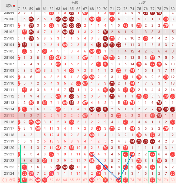 结合上期的数据分析,对快乐8第25125期的推荐如下: