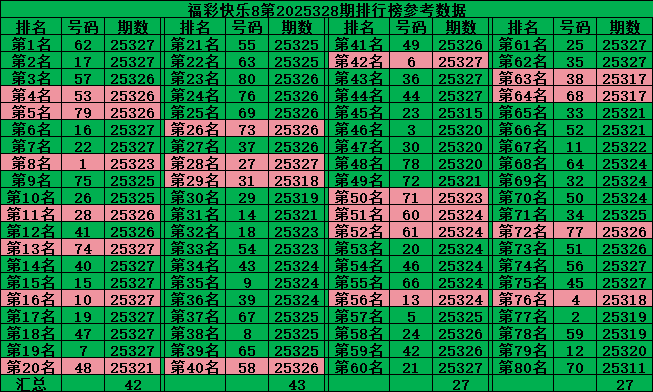 截至2025328期最大遗漏的号码是17期的70号,提取最近17期的数据做为2025329期的参考数据: