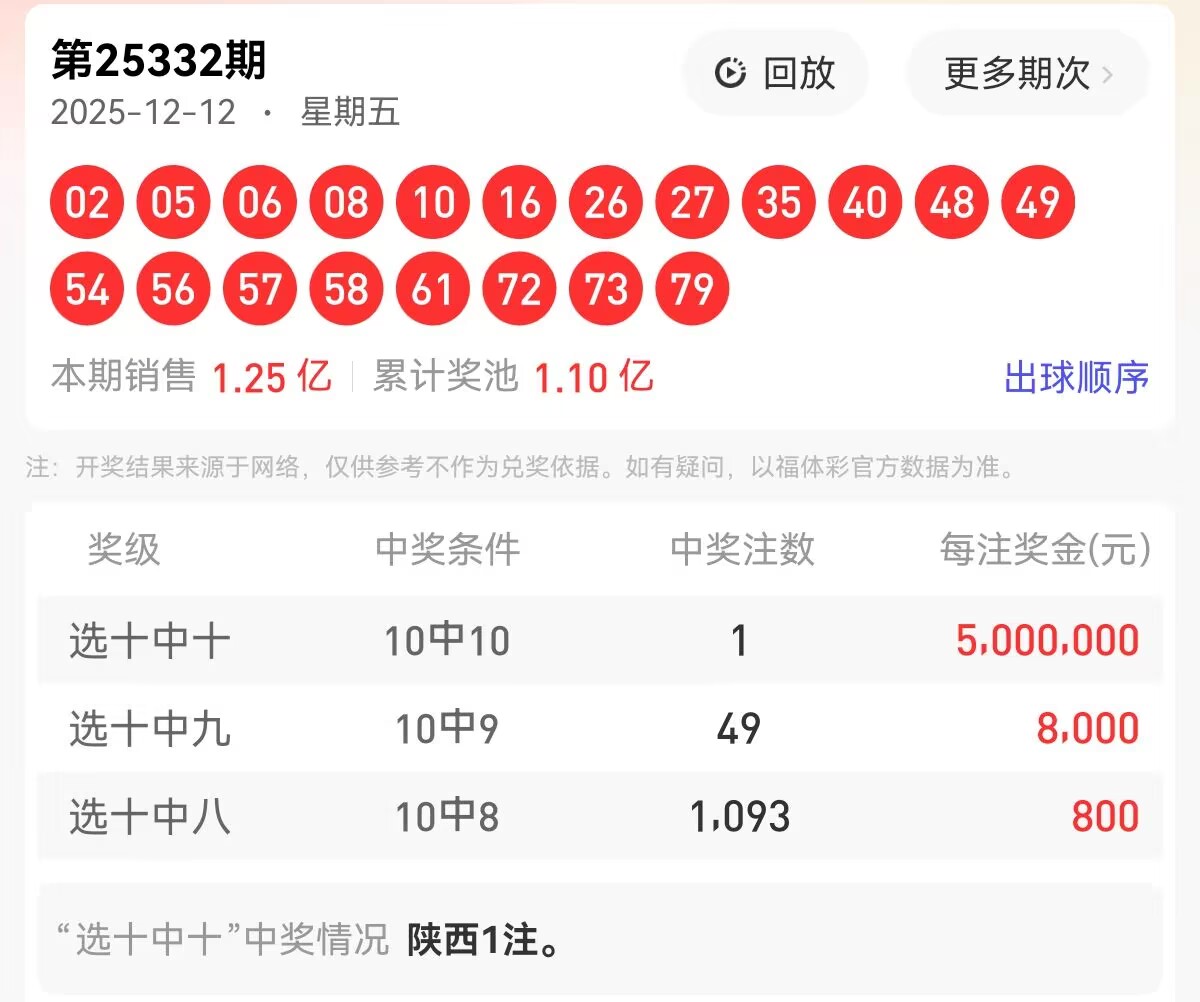 上期福彩快乐8第 2025332期开奖号码为【02 05 06 08 10 16 26 27 35 40 48 49 54 56 57 58 61 72 73 79】,其中大小比为10:10,奇偶比为8:12,和值为782,跨度77,四区间比为6:4:6:4。下面是对本期对于每个号码的详细分析。
