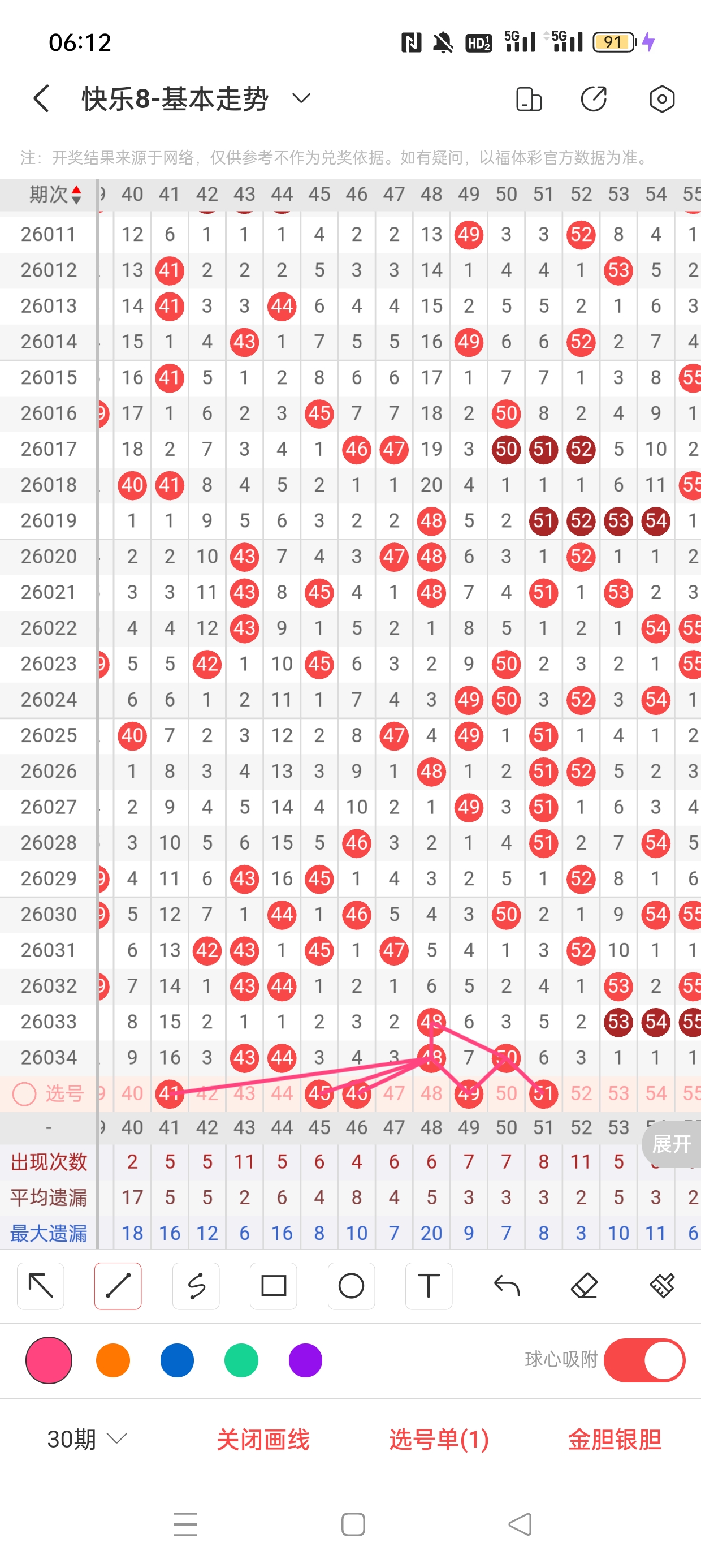6、分区法:快乐8共分为4个区,一区:1-20,二区:21-40,三区:41-60,四区:61-80。