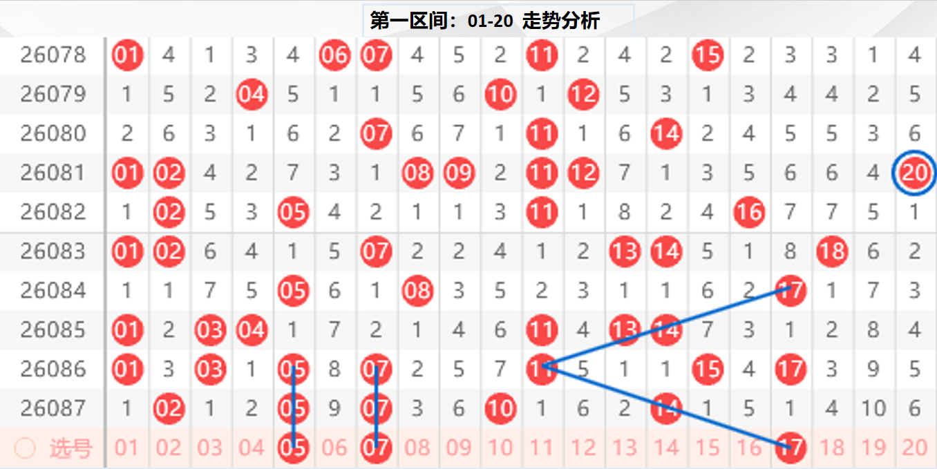 一区分析:【01-20】(走势图标注号码非小黄车大底,请谨慎参考,具体思路将在直播间分享讨论)
