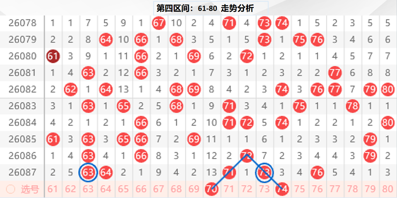 四区分析:【61-80】(走势图标注号码非小黄车大底,请谨慎参考,具体思路将在直播间分享讨论)