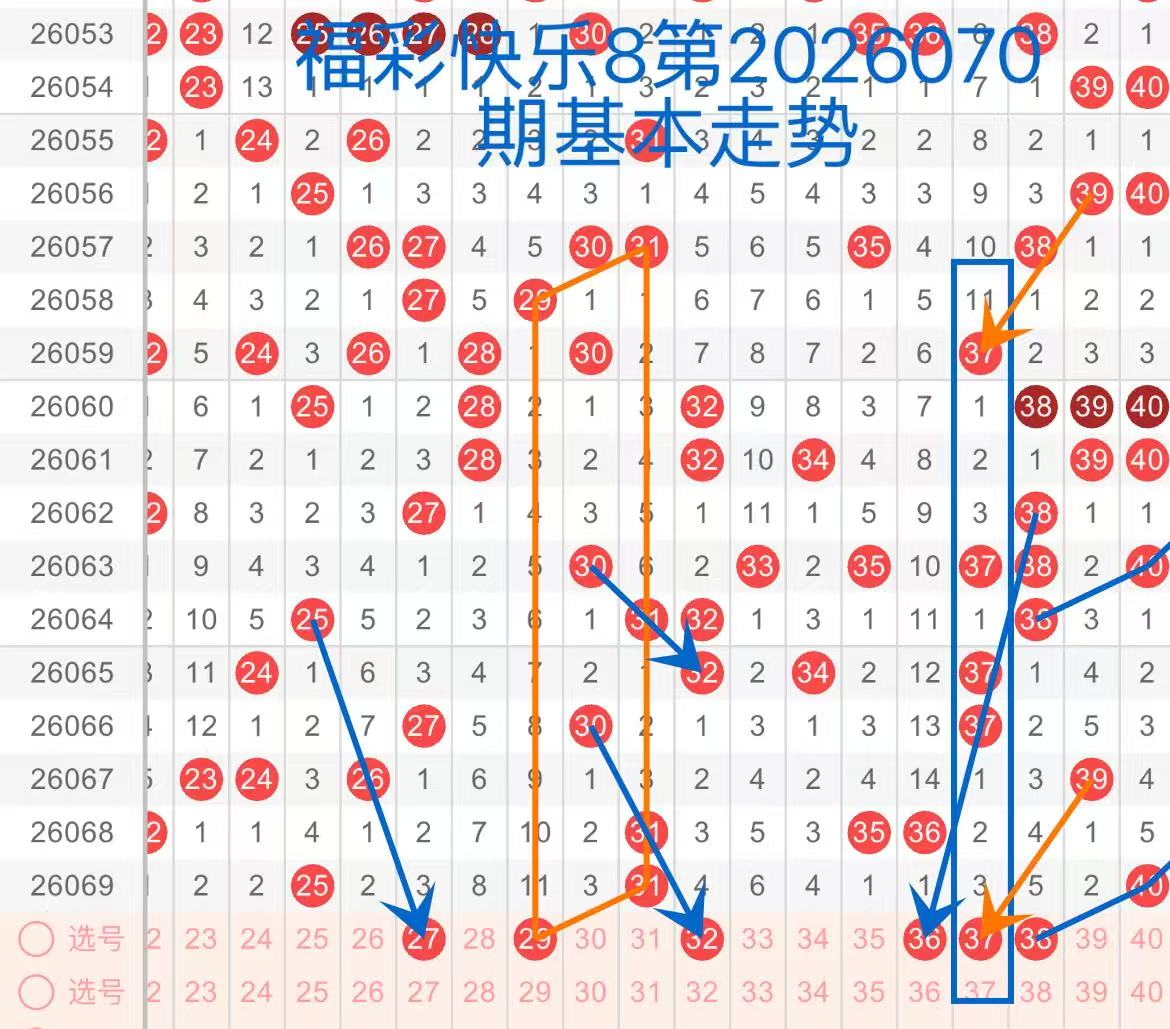 下面是我对2026070期福彩快乐8的分析和预判,希望通过我的分析能让大家今晚大满贯!福彩快乐8上期开奖号码如下图