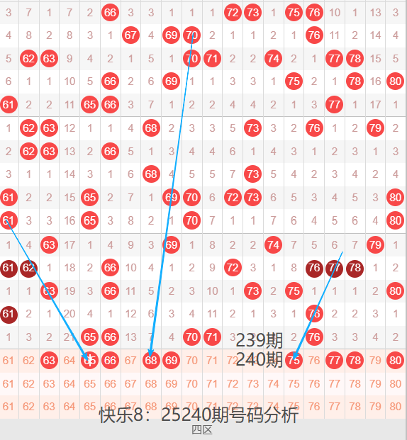 回顾25239期开奖号码:02 03 10 12 15 21 22 27 34 35 37 38 49 51 55 65 66 70 71 76 ,最近一段时间号码爆区几率特别高,目前已经连续多次出现爆区热开的情况,爆区之后基本上都是迅速回调,转换至其他区间继续暴热,大家若是能抓准区间,或许有很大的机会,但是号码的变盘规律是非常的快,很难把握,个人建议谨慎选择,不要 盲目的去操作~~