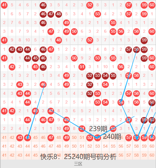 三区间41-60号码球走势,如下图: