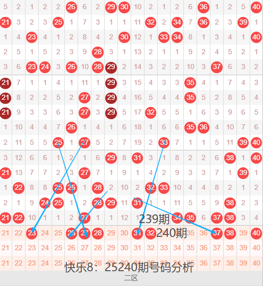 二区间21-40号码球走势,如下图: