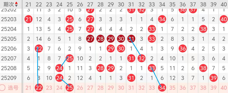 第二区间的走势分析:第二区间上期开出了三个号码球,主要的落号点位在二区间的龙头凤尾和中间,走出了两奇一偶的形态,二区间最近一直处于走冷的形态!今天的龙头主看22这个号码球的回补!之前一直处于走冷的形态,最近一个有所回暖;再看25这个号码球,走出了对称的形态!也是之前比较热的号码,最后关注34这个号码球的落位,整个形态是从31-32-33一直走下来的斜连码,大家参考为主!
