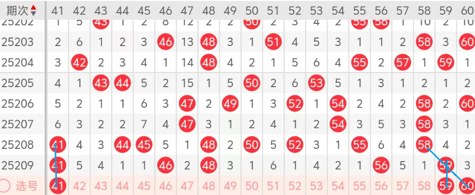 第三区间的走势分析:第三区间上期开出了五个号码球,主要的落号点位在三区间的前半区,走出了两奇三偶的形态,三区间最近开始有所回暖,今天的龙头我们主看41 上三楼,走出三重码的形态,也是47 44 的斜连码,走出了1-4-7为的形态;再看凤尾59 60这两个号码球,是热码组合,也是形态走势的趋向!这里今天还是需要重点关注一下的,大家参考为主!